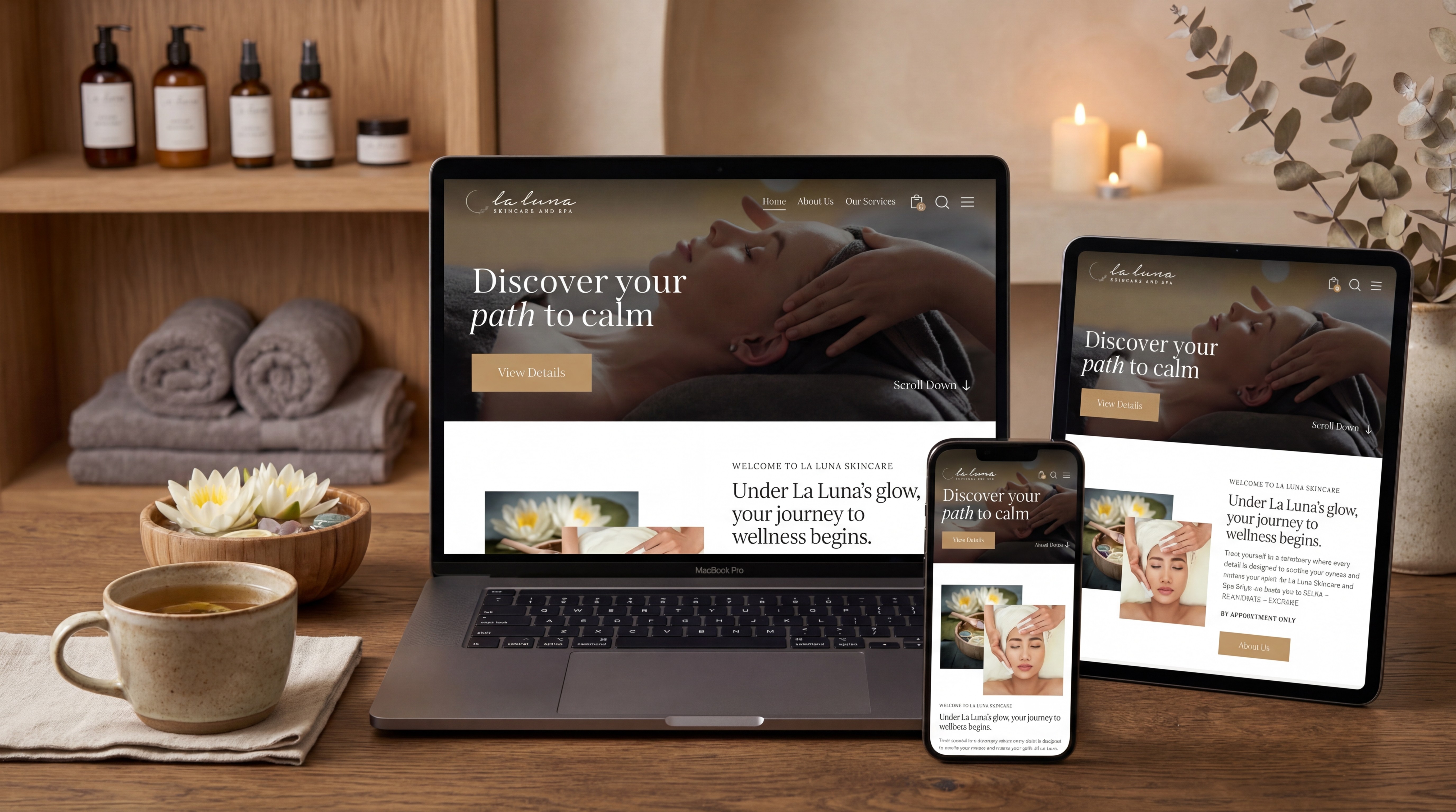 La Luna Spa & Skincare launched as a new business with the goal of building a strong digital presence from the ground up. From the beginning, the focus was on creating a cohesive brand identity, polished visual direction, and clear messaging that reflected calm, care, and elevated skincare services. The brand was developed to establish credibility, attract new clients, and create a refined online presence that supports awareness, engagement, and long-term growth.